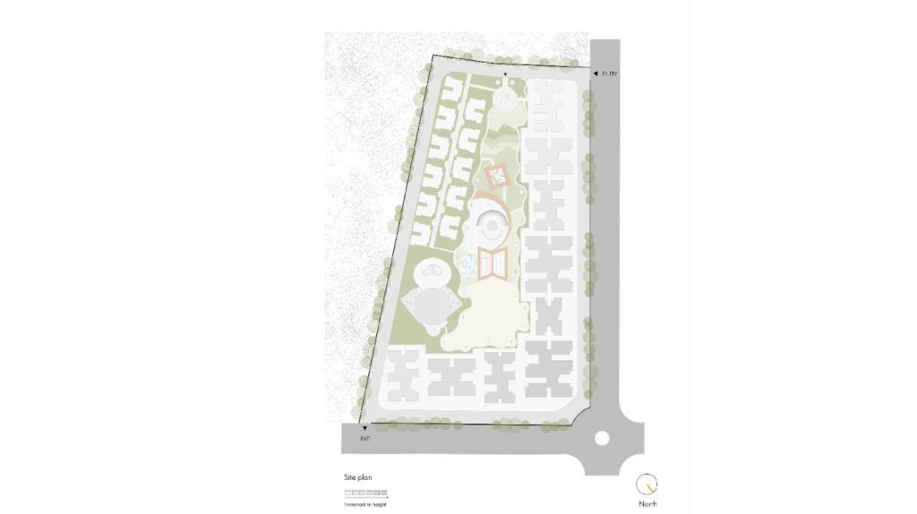 “Incremental variation in the height of the building structures allows the project to hold a dominating identity as well as a rising image around the existing diversities.”